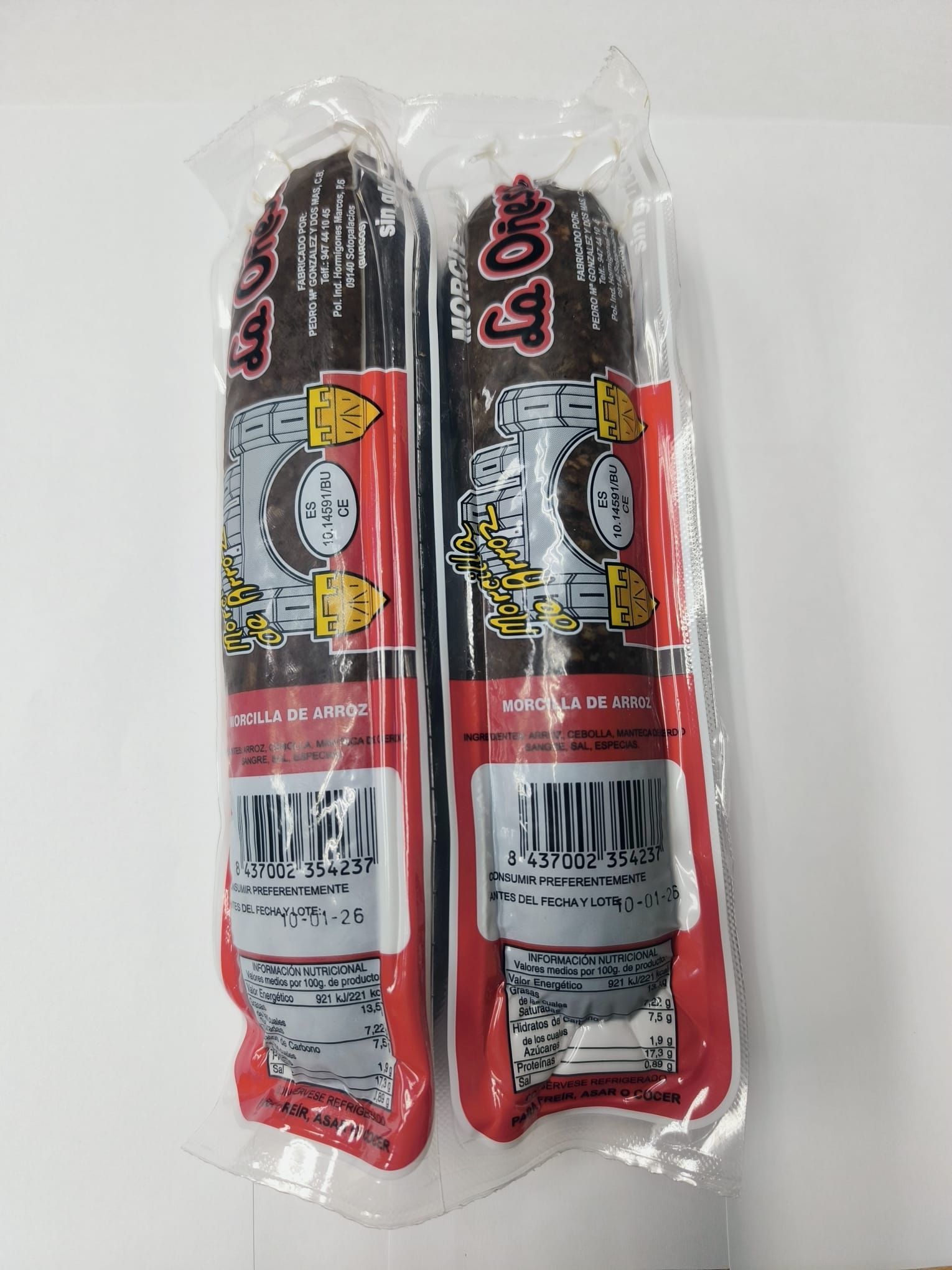 Morcilla típica de la zona norte de la provincia, más suave en el sabor y sin pimentón, por lo que se enfatizan los aromas de la pimienta y de la cebolla. Lleva sangre, cebolla horcal (en temporada), arroz, manteca, sebo, sal y pimienta.